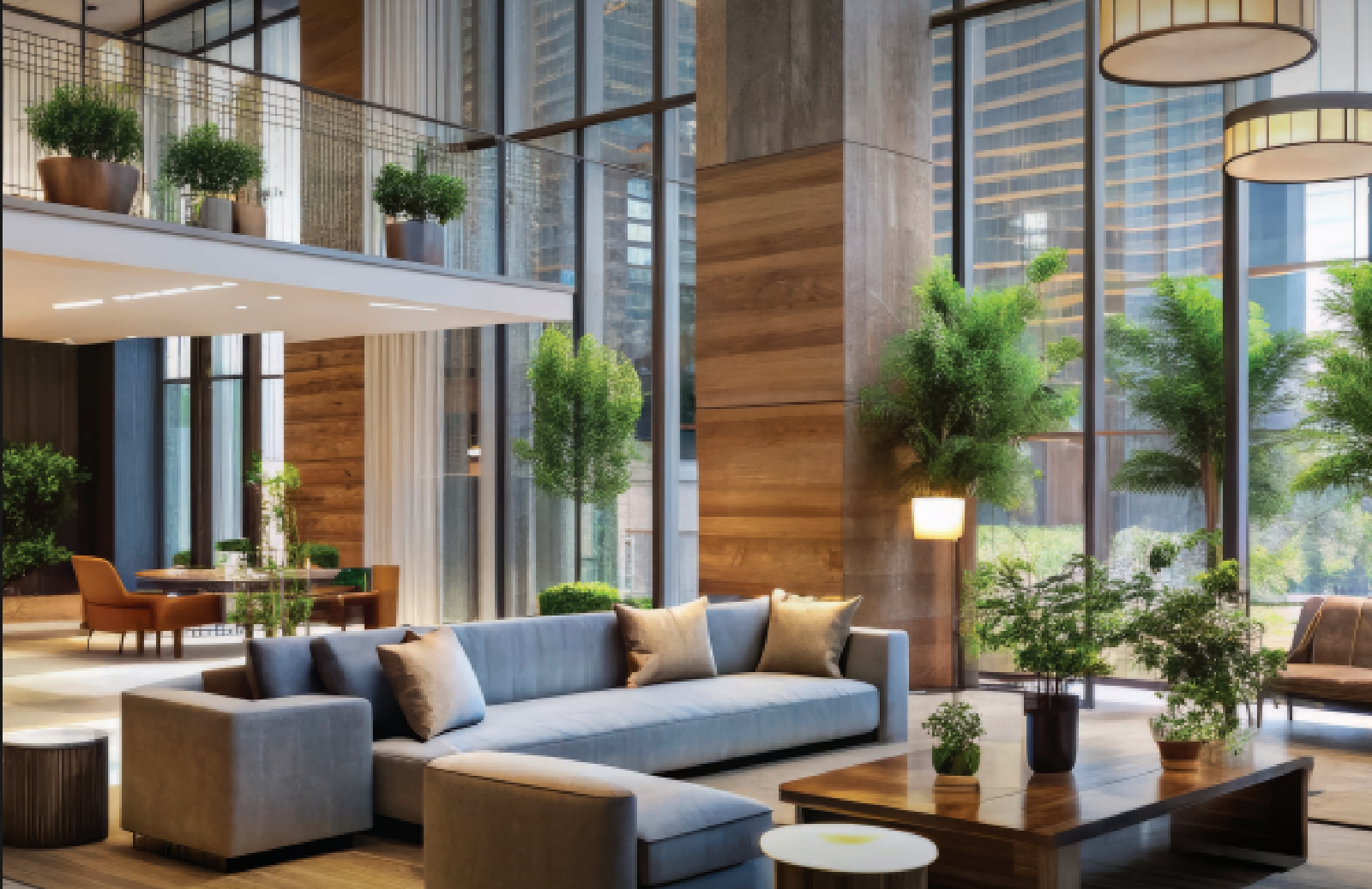• Wide corridors and multiple high-speed lifts